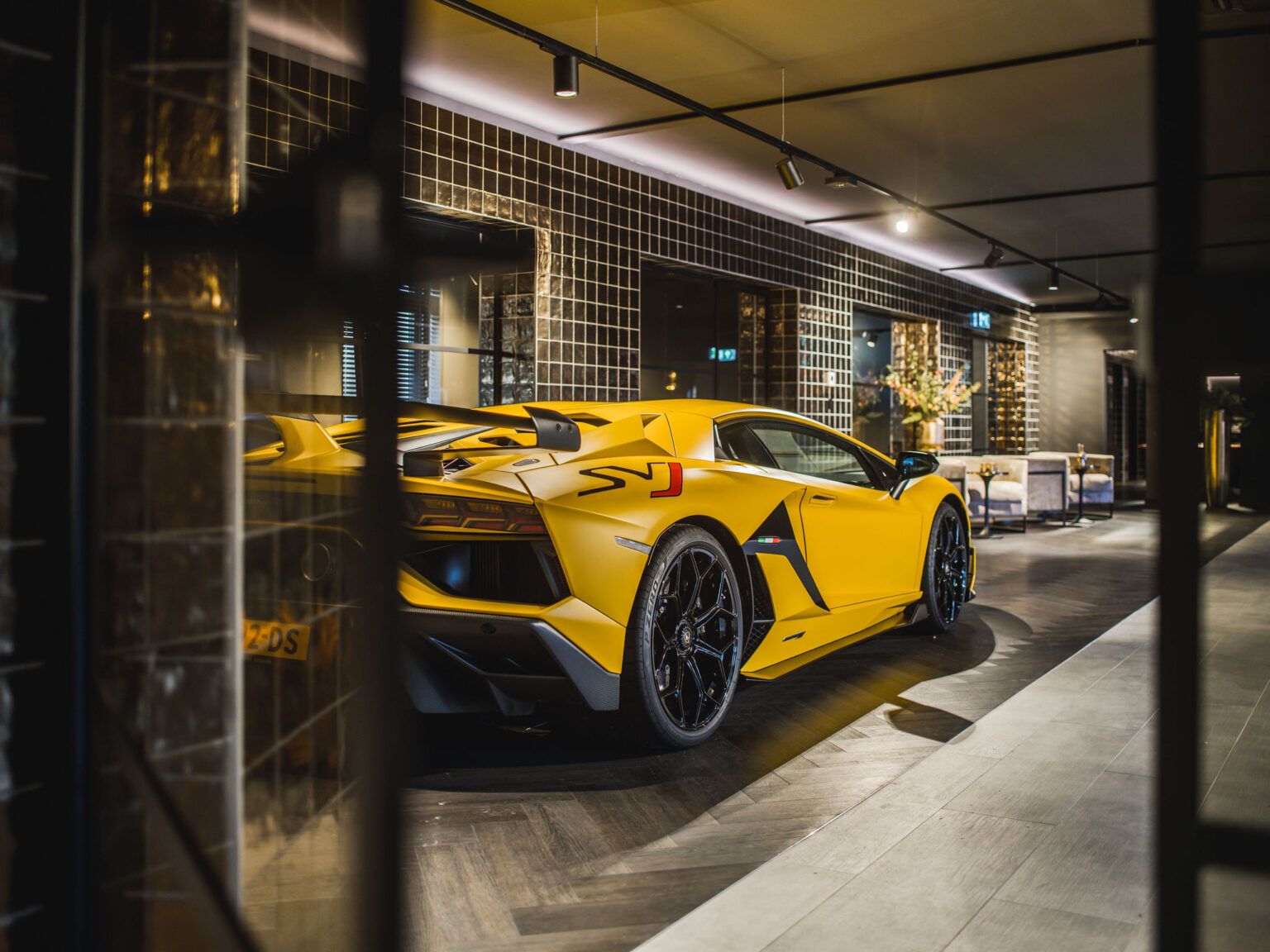 De linker Mancave is onderdeel van een kantoorgebouw, waar onze opdrachtgever zijn leden ontvangt, workshops geeft en vergaderingen heeft. De rechter Mancave is ontworpen in de basement van een riante woning. De Lamborgini komt met een autolift in- en uit de basement.